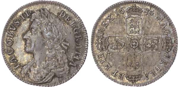 Laureate and draped bust left, Rev., Crowned cruciform shields, smaller garter star in centre, plain angles. 5.97g/6h. (Bull 762; ESC 1069; S. 3410). Extremely Fine, toned, with some remaining lustre.