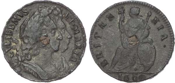 William and Mary (1689-1694), Tin Farthing, 1690.