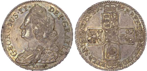 George II (1727-1760), AR Halfcrown, 1745 LIMA, NONO.