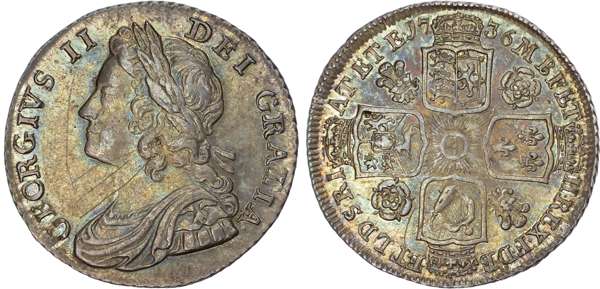 Young laureate and draped bust left, Rev., Crowned cruciform shields, roses and plumes in angles, 6.05g/6h. (Bull 1709; ESC 1199; S. 3700). Good Very Fine, or better, toned. Some old light scratches to obverse.