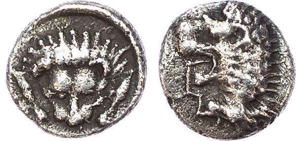 Karia, AE 0.2g; Ionia, Miletos, AR Diobol 1.07g; Ionia, Teos AR Obol 1.16g; Halicarnassus 0.43g AR Obol; Karia, Mylasa AR Obol 0.96g; Karia AR 1.09g ; Kolophon AR Obol; Theodosius I Cyzicus Mysia AE Follis 1.16 gr; Cilcia, Tarsos AR Obol, 0.87g; Karia, Mylasa AR Obol 0,68g; Ionia, Teos, AR Tetartemorion 0.16g; Karia, Mylasa AR Hemiobol, 0.52 g; Karia, Mylasa AR 0.15g; Aeolis, Kyme, 450-400 BC AR Hemiobol; Mysia, Kyzikos, AR Hemiobol 450-400, 0.4g; Mysia, Pergamon, AR Diobol 310-282 BC, 1.37g; Karia c.550 BC AR; Ionia, Kolophon, 5th Century BC, AR Obol, 0.94g; Karia, Mylasa, 0.16g AR, Ionia, Kolophon, 0.22g, Kios AR ¼ Drachm c. 350-320 BC, 1.17g; Ionia, Miletos AR 1.19g, Galatia, Deiotaros 64-40 BC, AR 6.71gAugustus, Olba AE 10 AD; Caracalla AE Galatia 7.91g, Tiberius, AR Denarius, 3.5g; Licinius AE Follis 2.90g, Licinius I AE Thessalonica AD 318- 319, 3.079g. Mostly Fine to Very Fine.