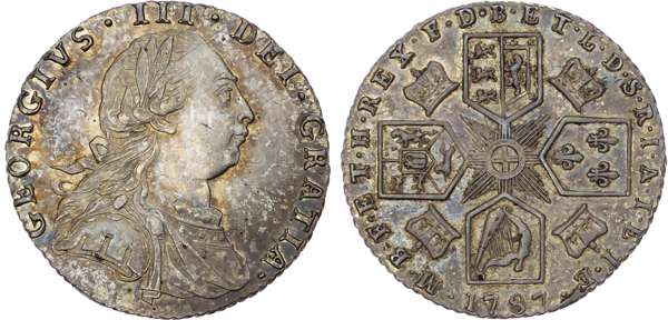 George III (1760-1820), AR Sixpence, 1787, with semée of hearts.