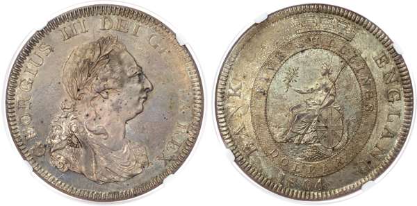 George III (1760-1820), Bank of England Issue (1804-1816), AR Dollar, 1804, NGC MS63.