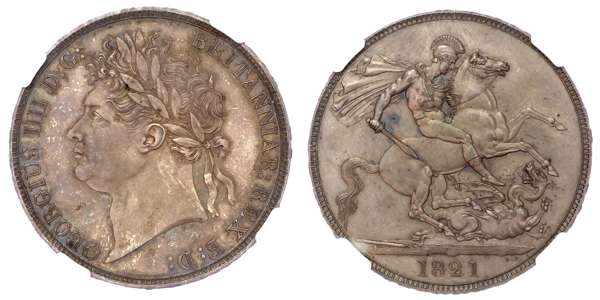 George IV (1820-1830), AR Crown, 1821, SECUNDO, NGC MS 63.