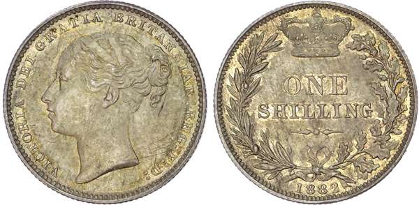 Victoria (1837-1901), Young Head Coinage (1838-1887), AR Shilling, 1882, type A⁷.
