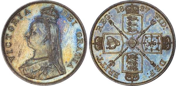 Victoria (1837-1901), Jubilee Coinage (1887-1893), AR Double-Florin, 1887, Arabic 1.