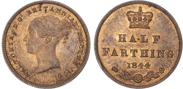 Victoria (1837-1901), Young Head Copper Coinage (1838-1860), AE Half-Farthing, 1844.