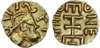France, Merovingians, Quentovic, electrum Tremissis, c. 585-675 AD, moneyer Anglus, IVVS FIT, diademed head right. Rev. AИLLO MOИET, Tau cross with central crossbar set on bas, quadrate M in legend, 1.35g (Belfort 4978; Prou 1135). Extremely Fine.