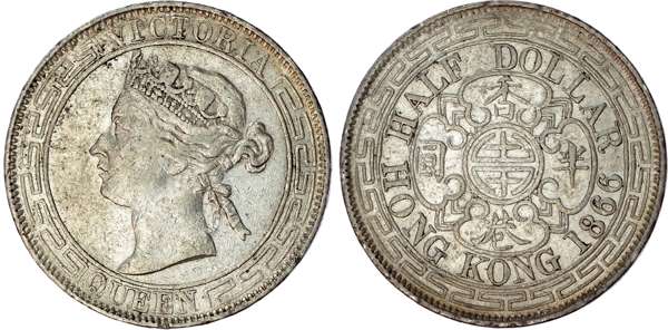 Hong Kong, Victoria (1837-1901), silver Half Dollar, 1866, 13.51g (KM 8; Prid. 4). Good Very Fine. The item was not encapsulated by NGC with the commentary ‘Residue’ (8222231-004). Mintage of only 59,000. Highly sought-after denomination. Sold as seen, no returns.
