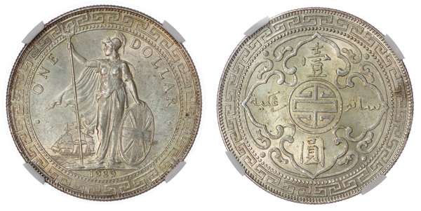 Hong Kong, Victoria (1837-1901), silver Trade Dollar, 1929, struck for circulation in East Asia, Bombay (Mumbai) mint (KM T5). In NGC holder graded UNC Details – Obverse Scratched (3415437-009). The scratches are very light and the coin is in wonderful condition overall.