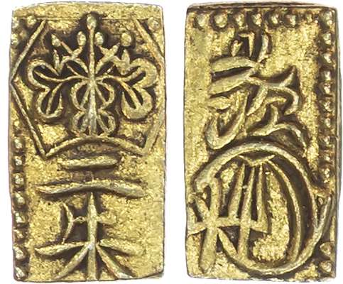 Japan, electrum denominations (3), including: Meiji Era 2 Bu (1868-1869), Tenpo Era 2 Shu (1832-1858) and Manen Era 2 Shu (1860-1869), 2.99g, 1.64g , 0.79g (JC 03-32; JC 03-24; JC 03-31). Good Very Fine. (3)