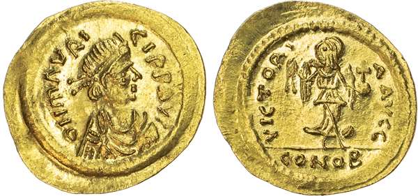 Maurice Tiberius (AD 502-602) AV Semissis, Constantinople, 2.24g.