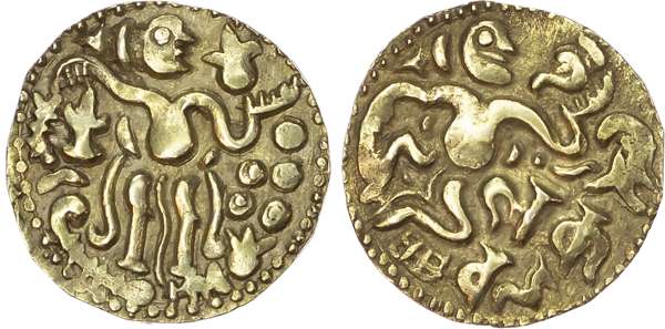 Sri Lanka (Ceylon), period of the Chola Invasion, c. 990-1070, electrum Kahavanu, 4.36g (Mitch. 825). Very Fine.