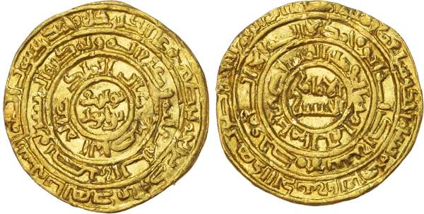 Ayyubid, al-Nasir Yusuf I – Saladin (AH 564-589 / 1169-1193 AD), gold Dinar, AH 571 / 1175/6 AD, al-Qahira, citing the caliph al-Mustadi, 4.42g (A. 785.2). About Extremely Fine, slightly wavy flan.