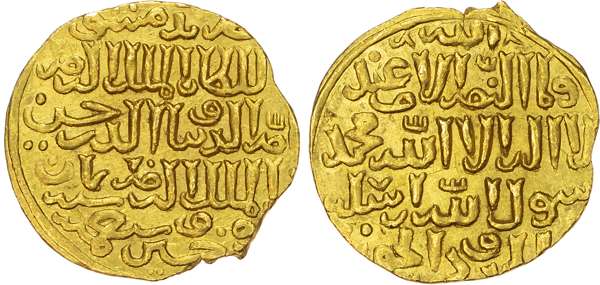 Bahri Mamluk, Hasan (AH 748-762 / 1354-1361 AD), gold Dinar, AH 758 / 1357 AD, Dimashq, 5.23g (A. 944). Extremely Fine, slightly uneven edge.