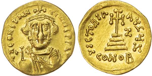 d N CONStAN – TINYS P P AV, bearded and crowned bust facing, holding globus cruciger. Rev. AVÇЧZ, cross potent on three steps, CONOB in exergue, Z to right. (Sear 938). Good Very Fine. Some residual lustre.