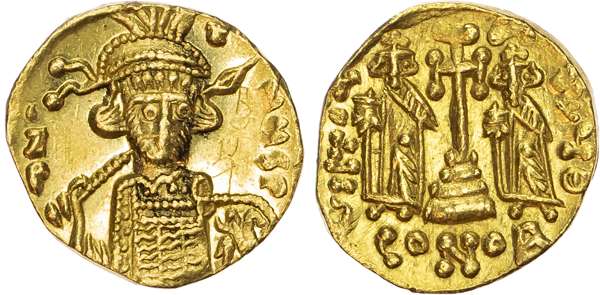 Constantine IV Pogonatus, with Heraclius and Tiberius (AD 668-685) AV Solidus, Constantinople, AD 669-674, 4.33g.