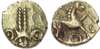 Double pelleted lines flanked by two pellets-in-annulets. Rev. Stylised horse stepping right, pellet-in-annulet below. (ABC 1471; VA -.). Good Very Fine. Excessively Rare.