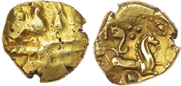 Trinovantes, Uninscribed (c. 55-45 BC) AV Stater, ‘Late Whaddon Chase’ type, 6.01g.