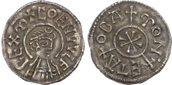 Diademed and draped bust right, breaking inner circle, + COENVVLF - REX M. Rev, + OBA + MON + ETA, around plain inner circle containing cross pomée with wedges in angles, 1.36gm (S. 916; N. 355; Naismith C41.5i this coin). Good Very Fine, pleasing.