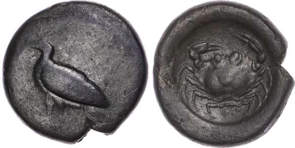 Sea eagle standing left. Rev. Crab within a shallow incuse circle. (HGC 2, 93; Dewing 552). Good Very Fine. Pleasing, dark tone.