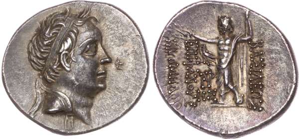 Diademed head facing right. Rev. Zeus standing left, holding an olive wreath over the king’s name. (De Callatay D 182/R 1). About Extremely Fine.