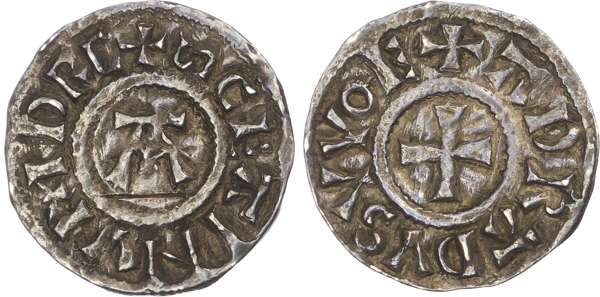 Adradus as moneyer, barbarous legends. +SC EINVMD ER, large A, Rev. +ADRADVS WOE, large cross pattée, 1.19g/3h. (N. 483; S. 961). Almost Very Fine, scratch to centre obverse, made in antiquity.