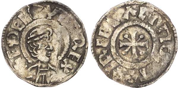 +EĐELVVLF REX, diademed bust right, Rev. HEREBEALD MONET, short cross pattée over saltire pommée, 1.12g/12h. (BMC XIV; Br. 7; N. 613; S. 1047). Very Fine, some peripheral weakness, very rare.