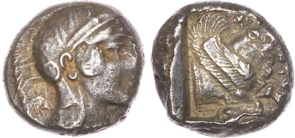Helmeted head right. Rev. Winged bull right. (Traite pl. 99, 14). Very Fine.