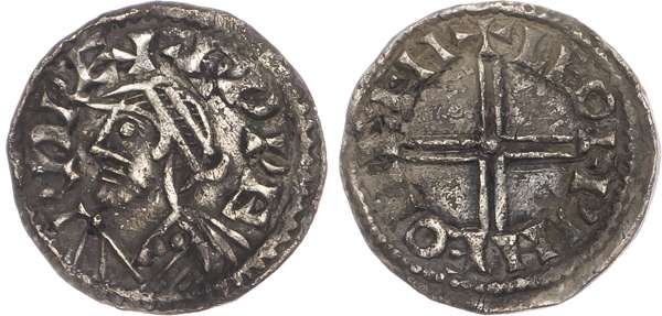 Crowned bust r. with sceptre, rev. voided short cross, + LEOFPINE ON CAEN, (N 818; S 1175). Good Very Fine, toned.