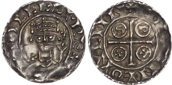 +PILLELM REX, crowned bust facing, sceptre to right, Rev. +GODPINE ON LVN, short cross pattée, PAXS in angles, 1.34g/3h. (BMC 8; N. 848; S. 1257). Good Very Fine, a bold portrait, toned.