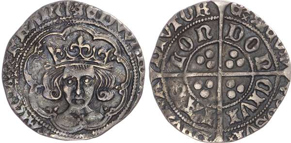 EDW[ARD DI GRA REX ANGL Z FR]ANC, saltire stops, crowned bust facing, rose on breast. Rev. POSVI DEVM ADIVTORE MEVM / CIVITAS LONDON, double saltire stops, rose in legend, long cross pattée, trefoil of pellets in each quarter, 2.51g/12h. (N. 1631; S. 2100). Very Fine, toned, obverse slightly double-struck.
