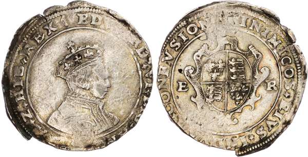Crowned draped bust l., rev. Royal Arms in ornate ogee garnishing, dividing ER. (Bispham pp.138-9, type 5/F; N 1924; S 2472). Lightly toned, Very Fine, with a particularly good portrait for this badly struck series.