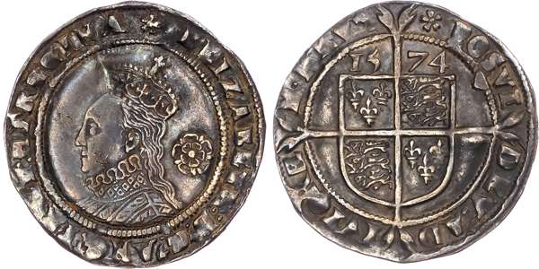 Elizabeth I (1558-1603). AR Sixpence 3.02gm.,1574, Tower (London) mm: eglantine.