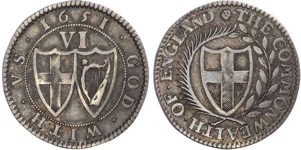 Commonwealth (1649-1660), AR Pattern Sixpence, by Blondeau, 1651, mm. Sun.