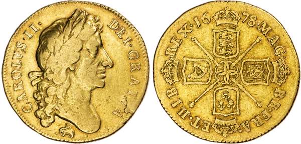 Second laureate head facing right, elephant and castle below, rev. crowned cruciform shields, crowns with frosted inner rings, five strings to harp, sceptres in angles, interlinked C's at centre, edge, milled (MCE 41; S.3336). Bold fine or better. A much underrated date.