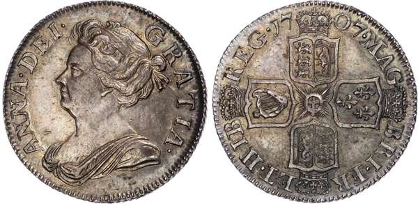 Anne (1702-1714) Shilling, 1707, post union with Scotland (1707-14).