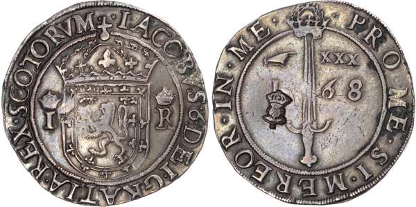 Scotland, James VI (1567‑1625), AR Ryal (Sword Dollar), First Coinage, 1568.