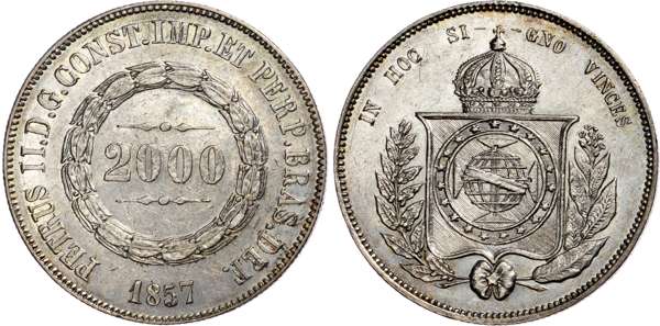 Brazil, Pedro II (1831-1889), silver 2000 Réis, 1857