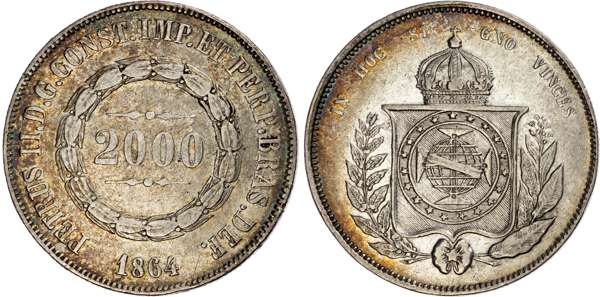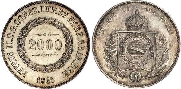 Brazil, Pedro II (1831-1889), silver 2000 Réis (2)