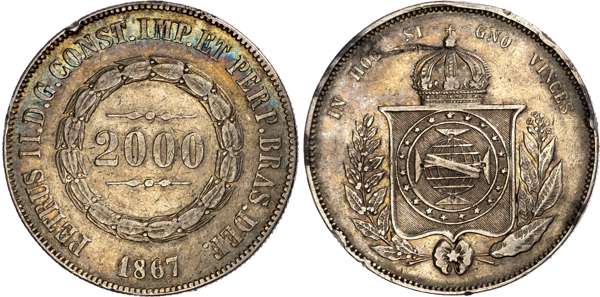 Brazil, Pedro II (1831-1889), silver 2000 Réis (2)