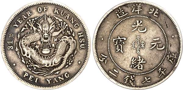 China, Chihli, silver Dollar, 1908, year 34, Pei Yang Arsenal