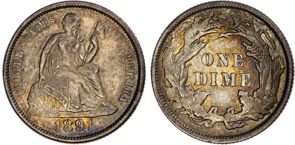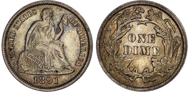 USA, Seated Liberty, silver Dimes (2), 1891, Philadelphia, 2.51g and 2.47g (KM A92). Good Very Fine to About Extremely Fine. (2)
