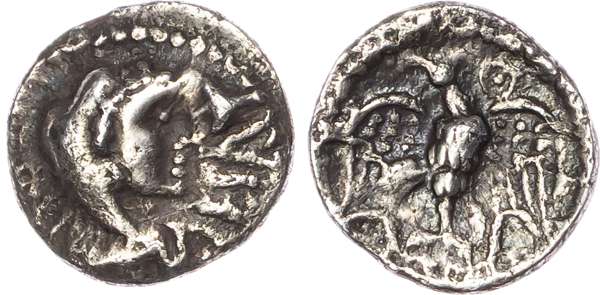 EPATI, head of Hercules facing right, wearing a lionskin headdress. Rev. Eagle standing right on serpent, head left, pellet-in-annulet to right. (ABC 1346; VA 580-3; BMC 2070-6). Fine.