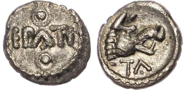 Atrebates and Regini, Epaticcus (c. AD 20-40) AR Minim, ‘Boar’s Head’ type, 0.27g.