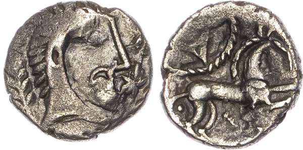 Iceni (c. 20 BC-AD 10) AR Unit, ‘Norfolk God Moustache’ type, 1.30g.
