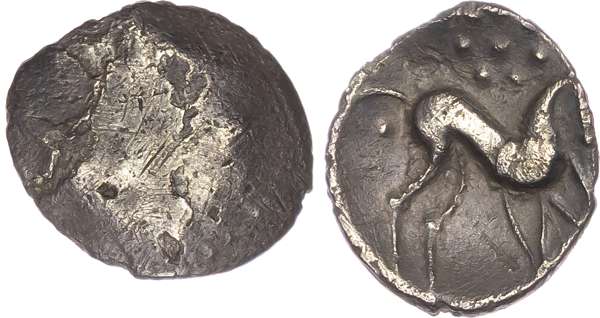Blank mound. Rev. Stylised horse right, pellets annulet above. (ABC 1800; VA 875). Very Fine. Pleasing, dark tone.