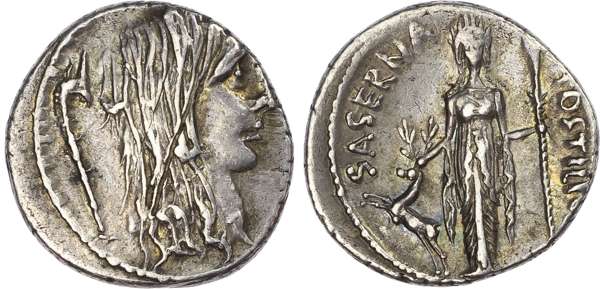 L. Hostilius Saserna (48 BC) AR Denarius, Rome, 3.68g.