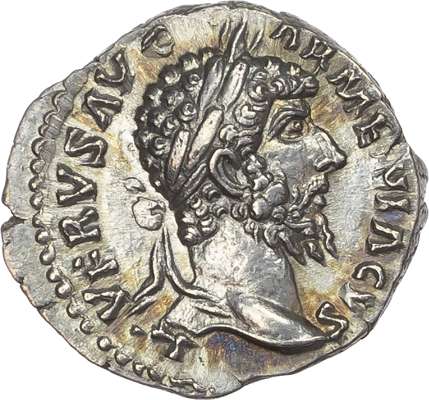 L VERVS AVG ARMENIACVS, laureate, draped and cuirassed bust of Lucius Verus right. Rev. TR P V IMP II COS II, Mars standing right, holding spear and shield. (RIC 528; BMC 376). Extremely Fine or better. Pleasing iridescent tone.