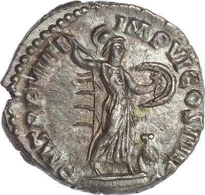M COMMODVS ANTON AVG PIVS, laureate head of Commodus right. Rev. TR P VIIII IMP VI COS IIII P P, Minerva advancing right, holding spear and shield, owl to right. (RIC 72; BMC 120). Extremely Fine.
